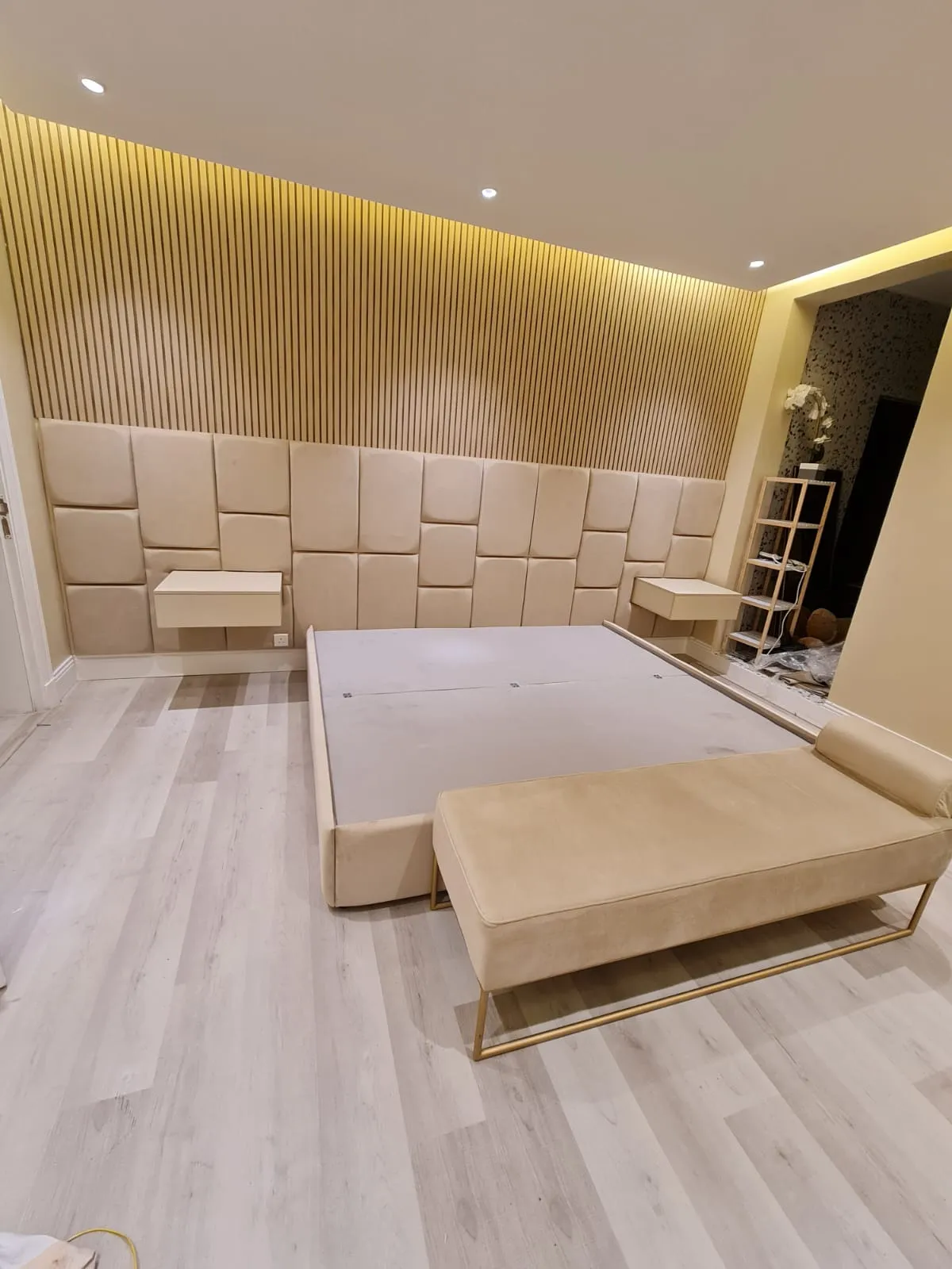 تفصيل خلفيات سرير حديثة في الرياض في عالم تصميم الديكورات، تعتبر خلفيات غرف النوم من أبرز العناصر التي تساهم في إضافة لمسة جمالية وراقية للمساحة. إن استخدام القماش كمادة لتفصيل الخلفيات يتيح تنوعًا كبيرًا من الألوان والنقوش، مما يسمح لك بالإبداع في اختيار الأنماط التي تعكس ذوقك الشخصي.